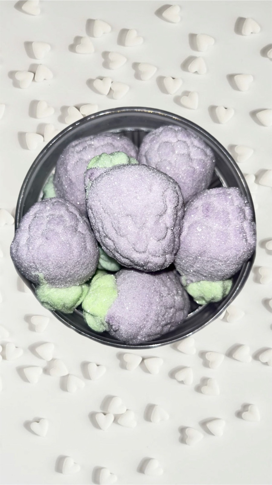 Ніжні та повітряні маршмеллоу у формі ягід ожини. М’яка текстура та легка цукрова обсипка створюють приємний солодкий смак, який буквально тане в роті.