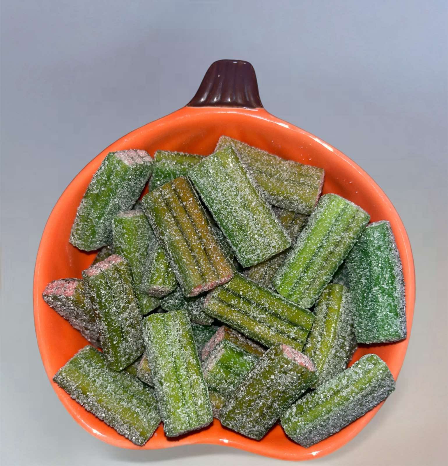 Кислі желейні цукерки з кавуновою начинкою середньої плотності